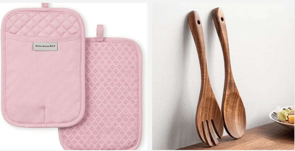 I’m all about the practical gifts. These are perfect high quality pieces for her kitchen that are sure to please the mother in your life. The stain on these tongs and the smaller size are just perfect for serving with precision. I also just love the pastel color of these potholders. Tongs here and potholders here.